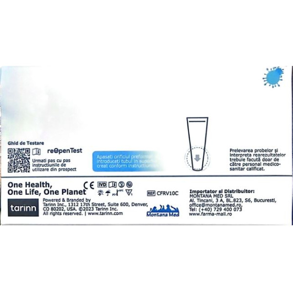 Test imunocromatografic cu flux lateral pentru detecția calitativă, prezumtivă, a antigenelor virale din exsudat nazal sau nazofaringian: SARS-CoV-2 (COVID-19), Influenza A, Influenza B și Virusul Sincițial Respirator (VSR). Rezultat în 10–15 minute.